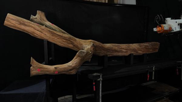 Este proyecto explora cómo troncos de árboles altamente irregulares pueden transformarse en sistemas estructurados y dimensionados. A través de cortes estratégicos e inserción de cuñas, se modifica la geometría natural para guiar su curvatura y dirigir las ramas hacia puntos de carga específicos.