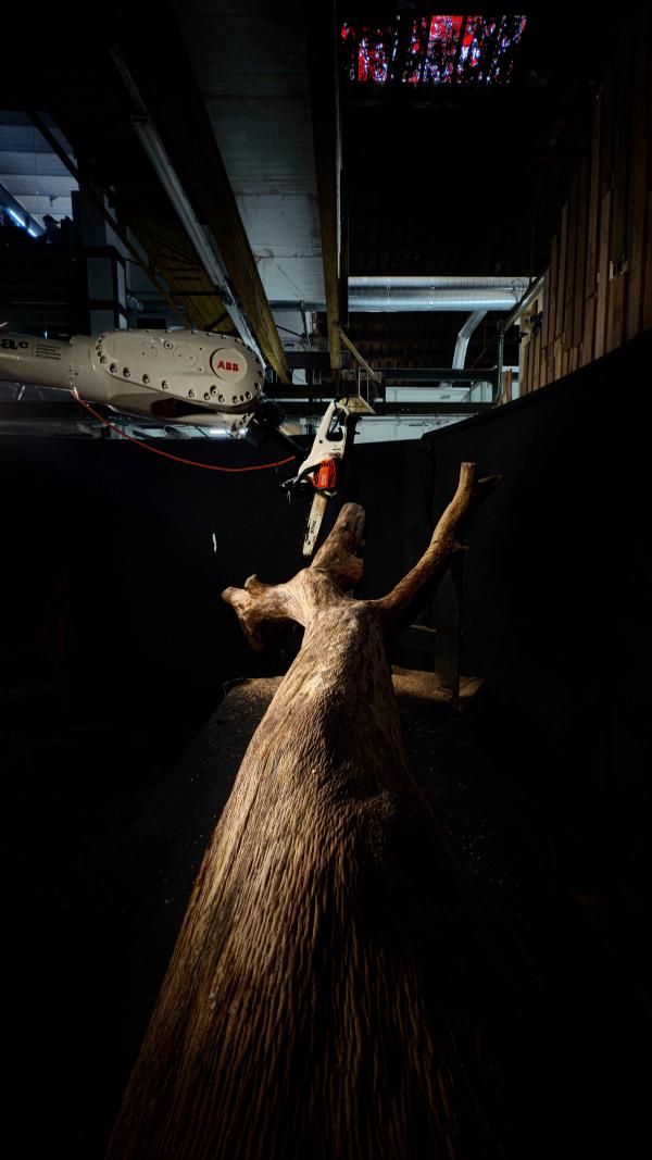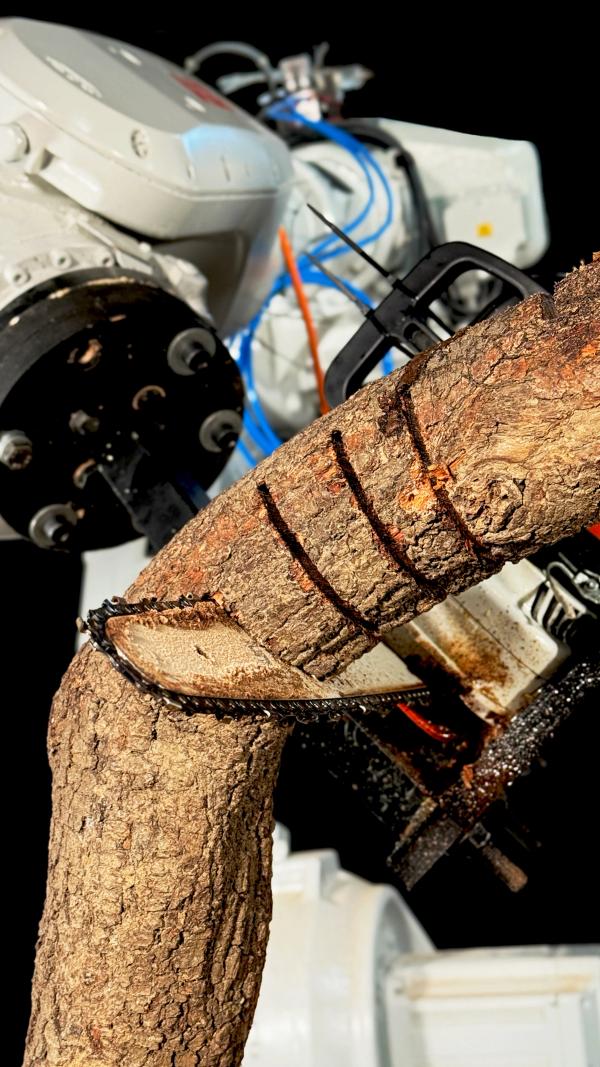 Mediante escaneo 3D, diseño paramétrico y fabricación robótica, desarrollamos una transformación controlada que permite aprovechar el potencial estructural de partes del árbol que normalmente se descartan por su forma, abriendo nuevas posibilidades arquitectónicas para la madera natural.
